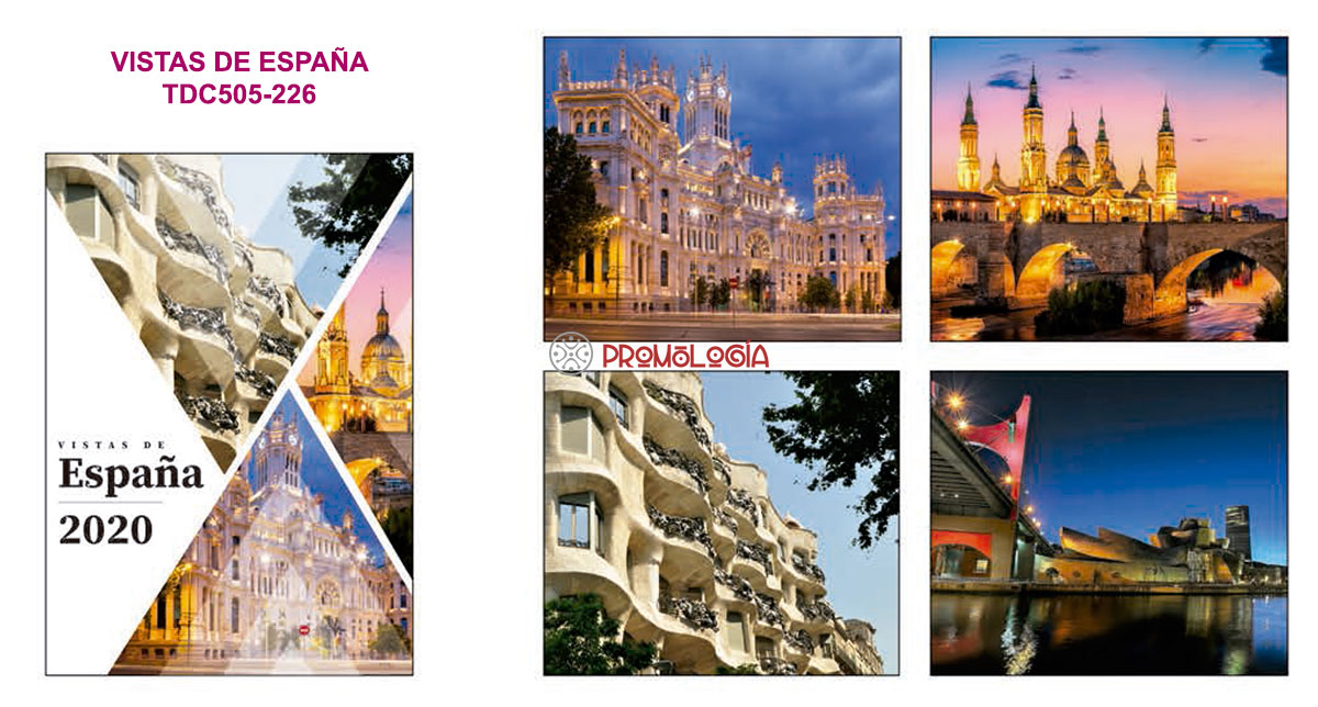 Este calendario trimestral es un clásico entre los calendarios promocionales de pared. Al cambiar de trimestre cambia también la imagen, lo que hace no llegue a cansar tanto.