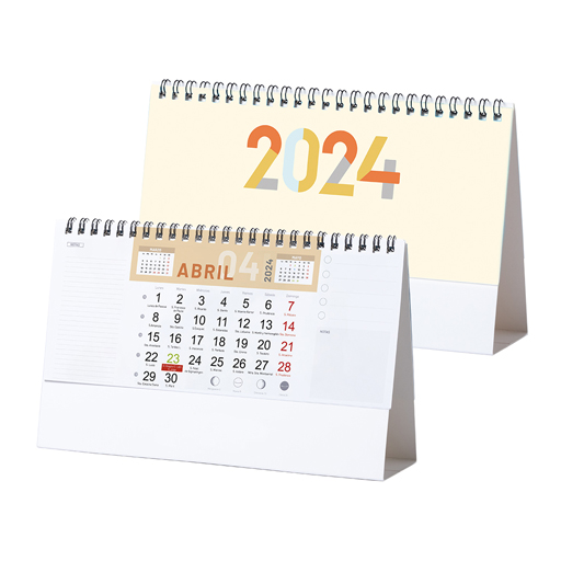 Un calendario wire de sobremesa de excepcional precio. Las dos impresiones garantizan un alto número de impactos visuales sobre su marca. Los meses, uno por página, se ven amplios y, a ambos lados, los espacios para anotaciones le dan una utilidad añadida.